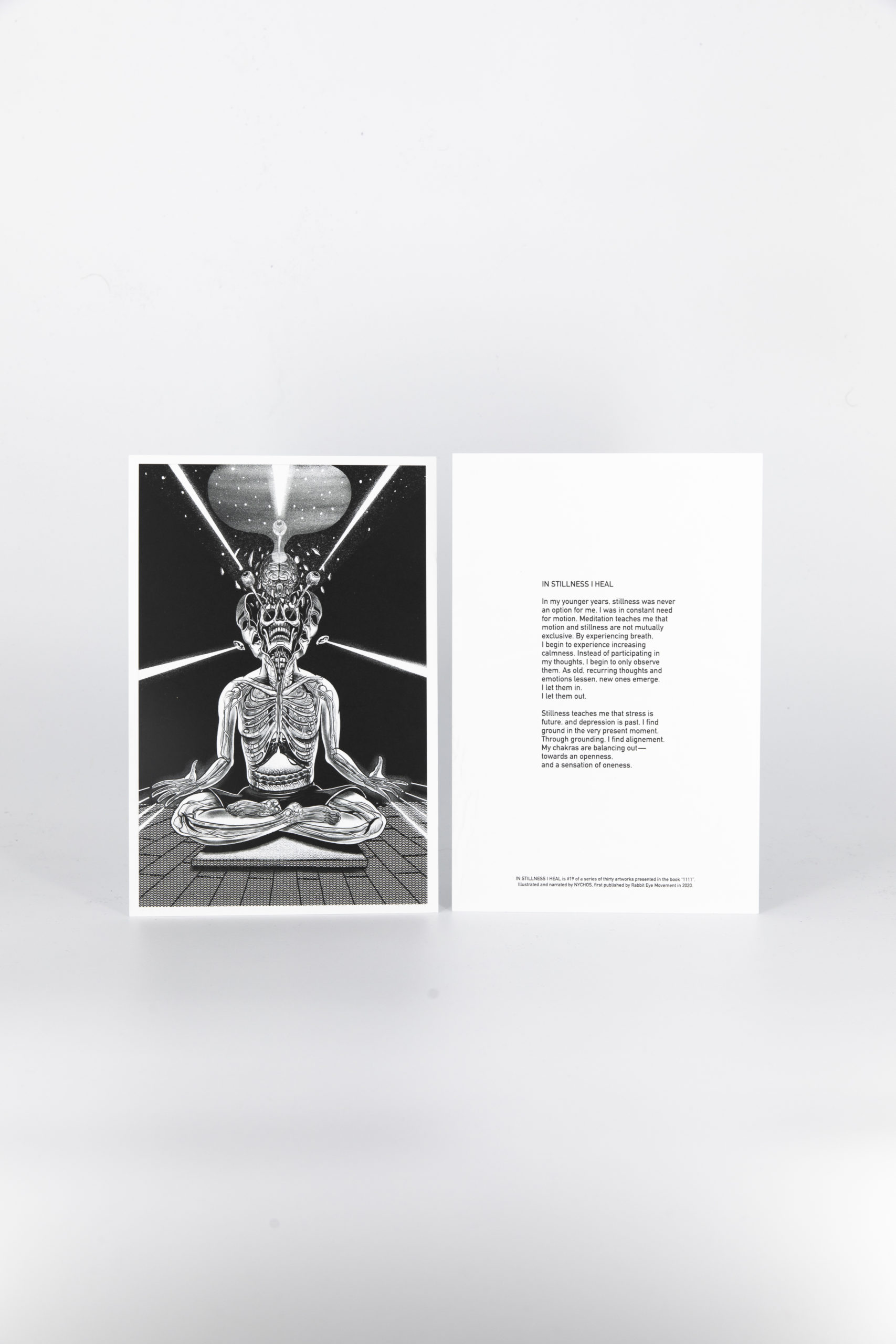 - “In Stillness I Heal“ mini-print double-sided print on 18pt uncoated paper size: 6×9 inch open edition