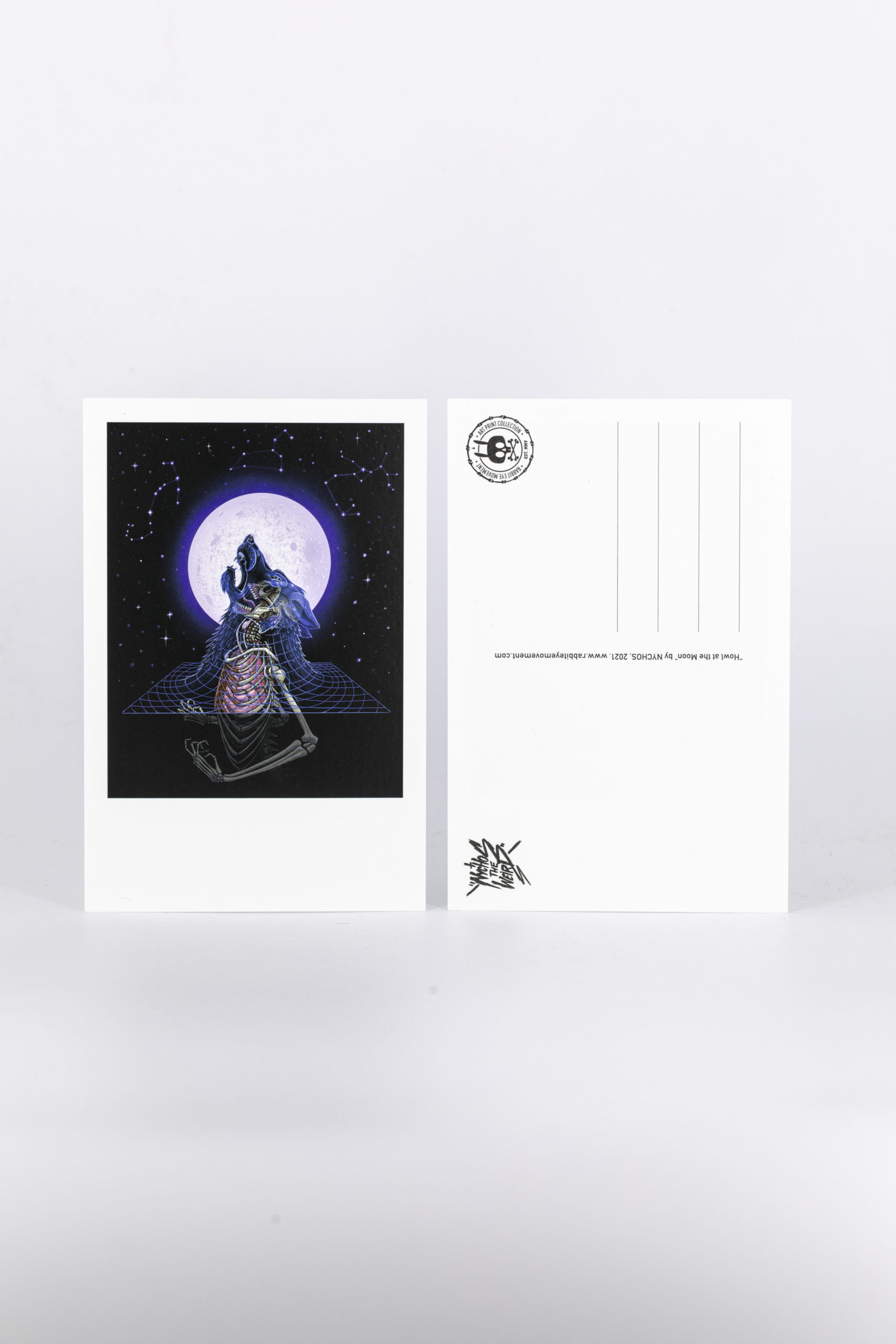 - “Howl at the Moon” Postcard full color print on 18pt matt coated paper (back side uncoated) size: 4×6 inch open edition This postcard can be enhanced with an animation through our augmented reality app RabbitEye.